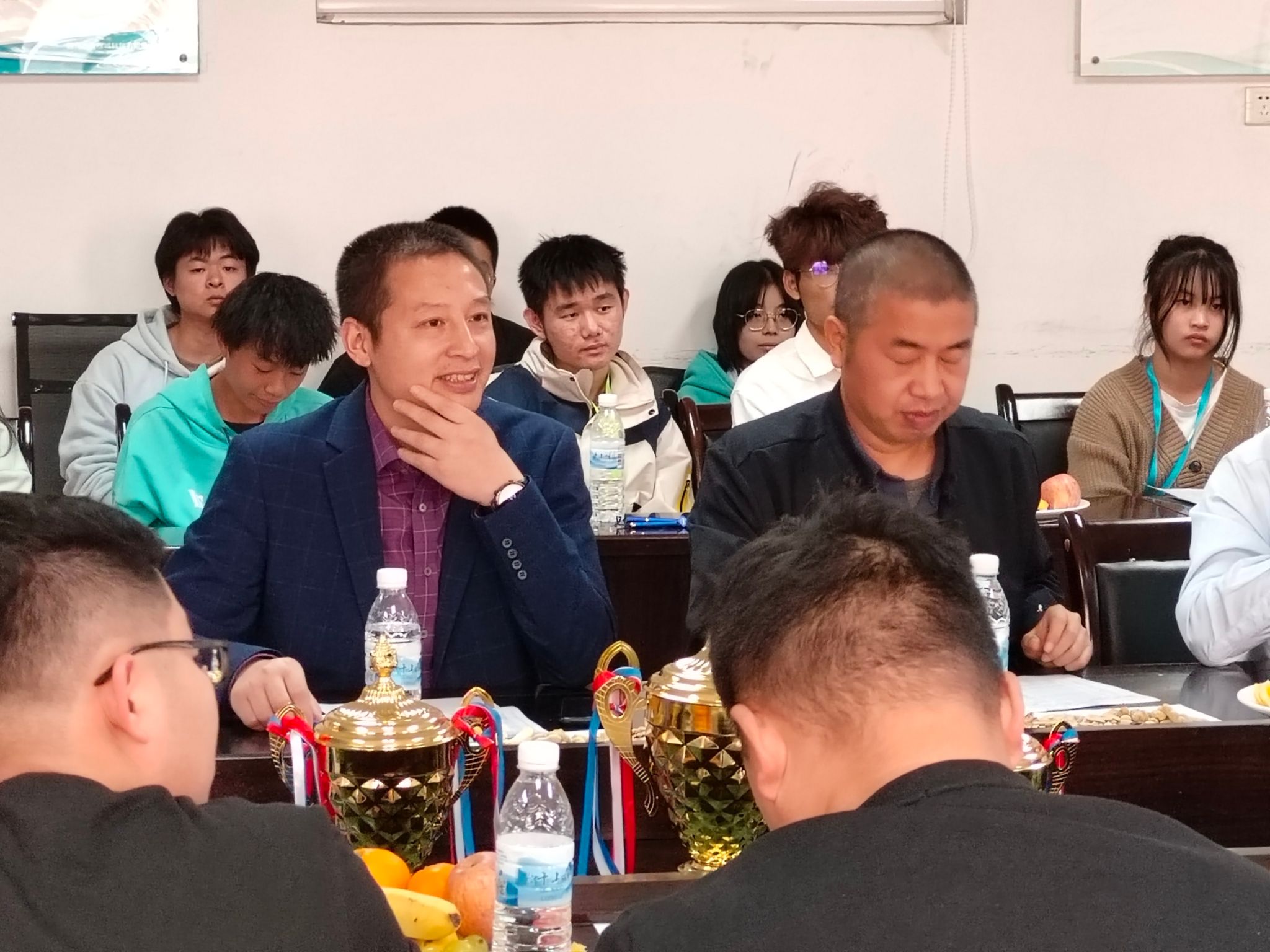 会后,朱根松总结座谈会内容,各任课老师和校友们友好交流,并祝愿校友们事业蒸蒸日上,欢迎校友们常回学校与他们沟通交流,并给他们发放了由机电系3D动力协会设计并制作的纪念品,校友们也和大家分享了他们带来的黑茶。