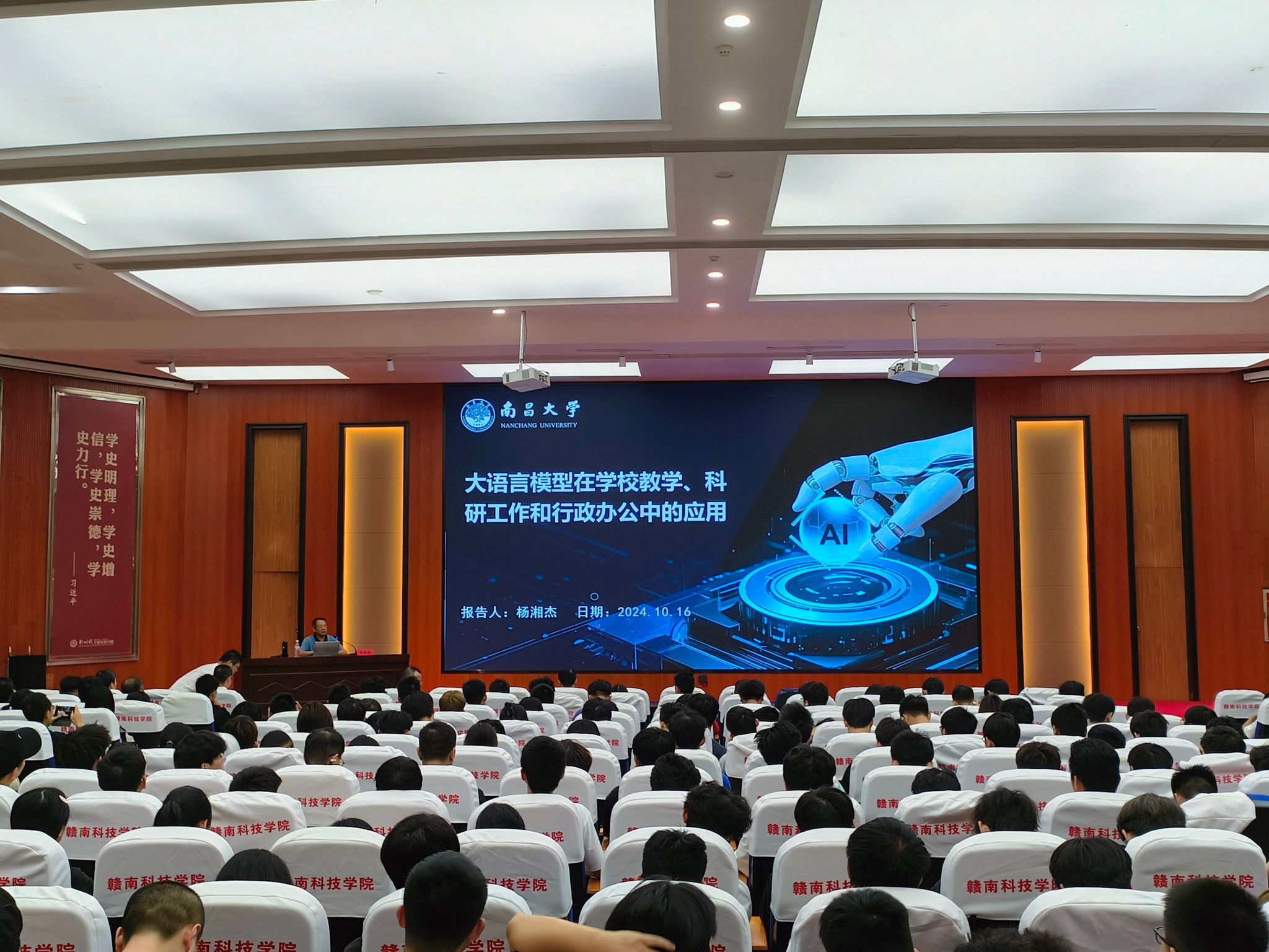 本网讯:10月16日下午,pp电子游戏平台网站举行“匠心智造”大讲堂学术讲座。本次讲座邀请到南昌大学先进制造学院杨湘杰教授作“大语言模型在学校教学、科研工作和行政办公中的应用”报告,吸引了来自全校300多名师生的积极参与,报告会由pp电子游戏平台网站副院长刘辉主持。