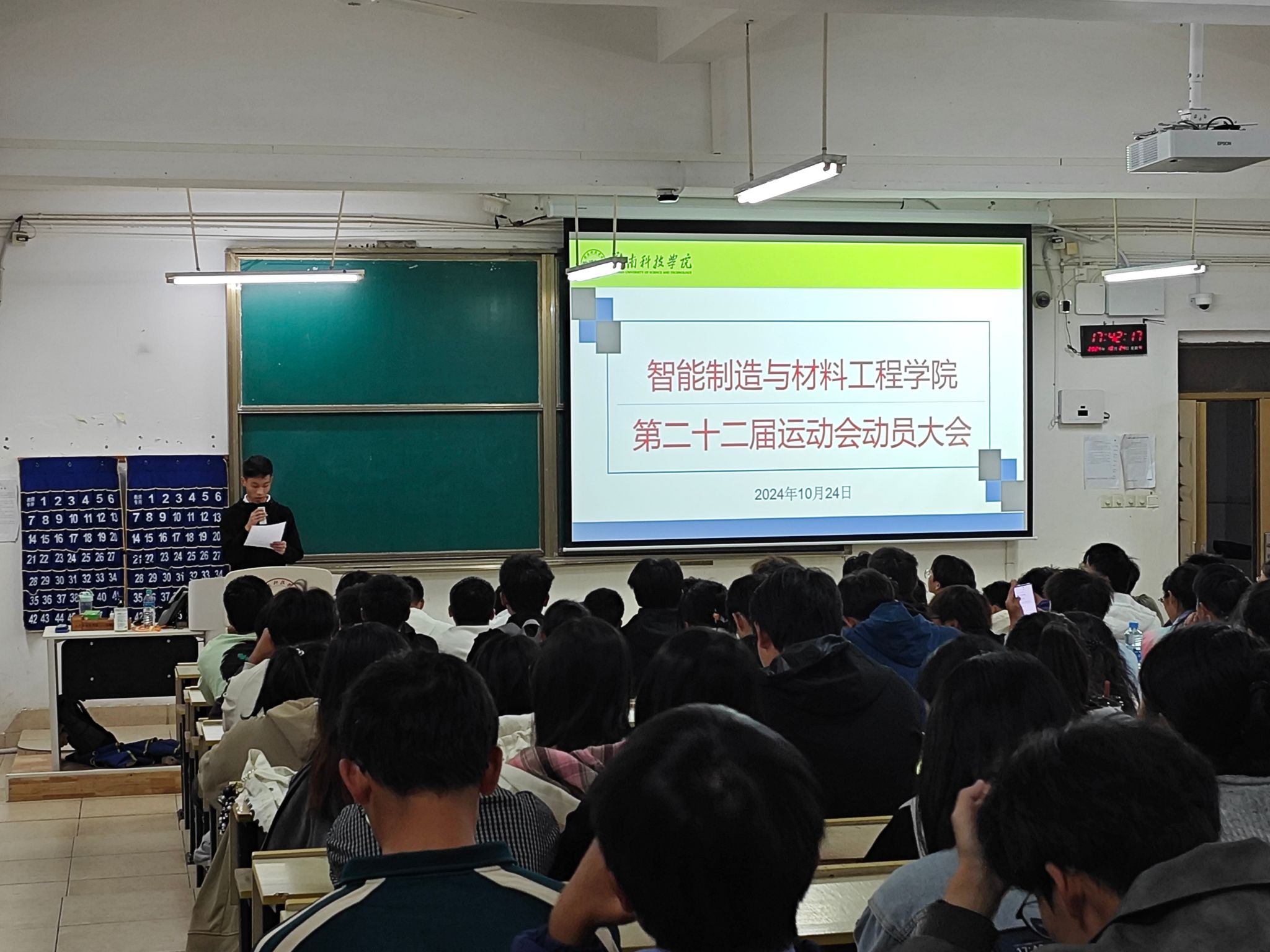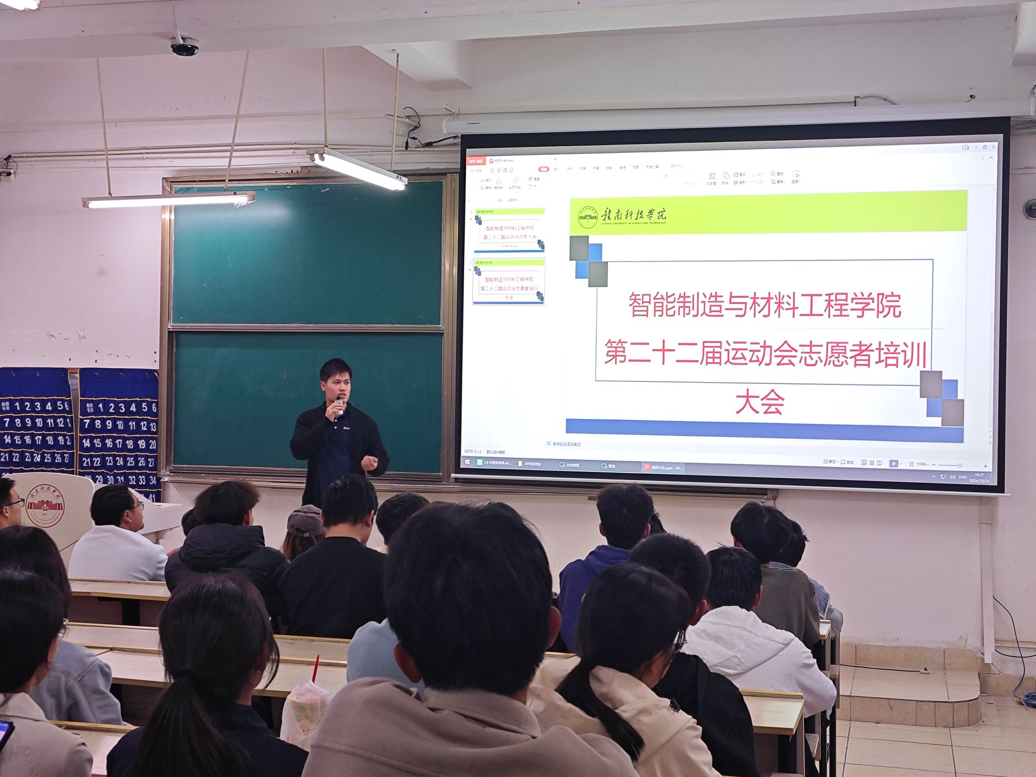 本网讯:为备战pp电子第二十二届运动会,点燃运动员们的激情。10月24日晚,pp电子游戏平台网站于崇善楼Z2D1召开第二十二届运动会动员大会。智造学院学工负责人肖志华、团委负责人卢名亮、全体辅导员、全体运动员、学生会全体成员、班助全体成员、所有新生班级班长和团支书、党支部学生负责人、志愿者服务队队长参加了这场会议。