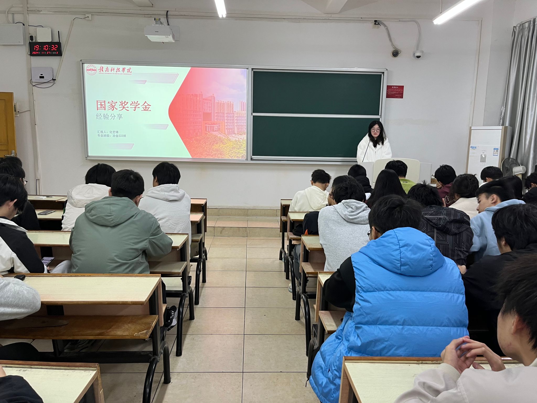 随后,冶金221班化艺锦同学为冶金231班、冶金232班和冶金241班全体学生进行榜样宣讲。化艺锦表示坚持勤奋、脚踏实地是学习上不断保持进步的主要原因,同时她也给同学们分享了作为班级干部团支部书记的工作方法,宣讲过程从容稳重,娓娓道来,最后由台下提问台上答疑的方式结束本次宣讲。