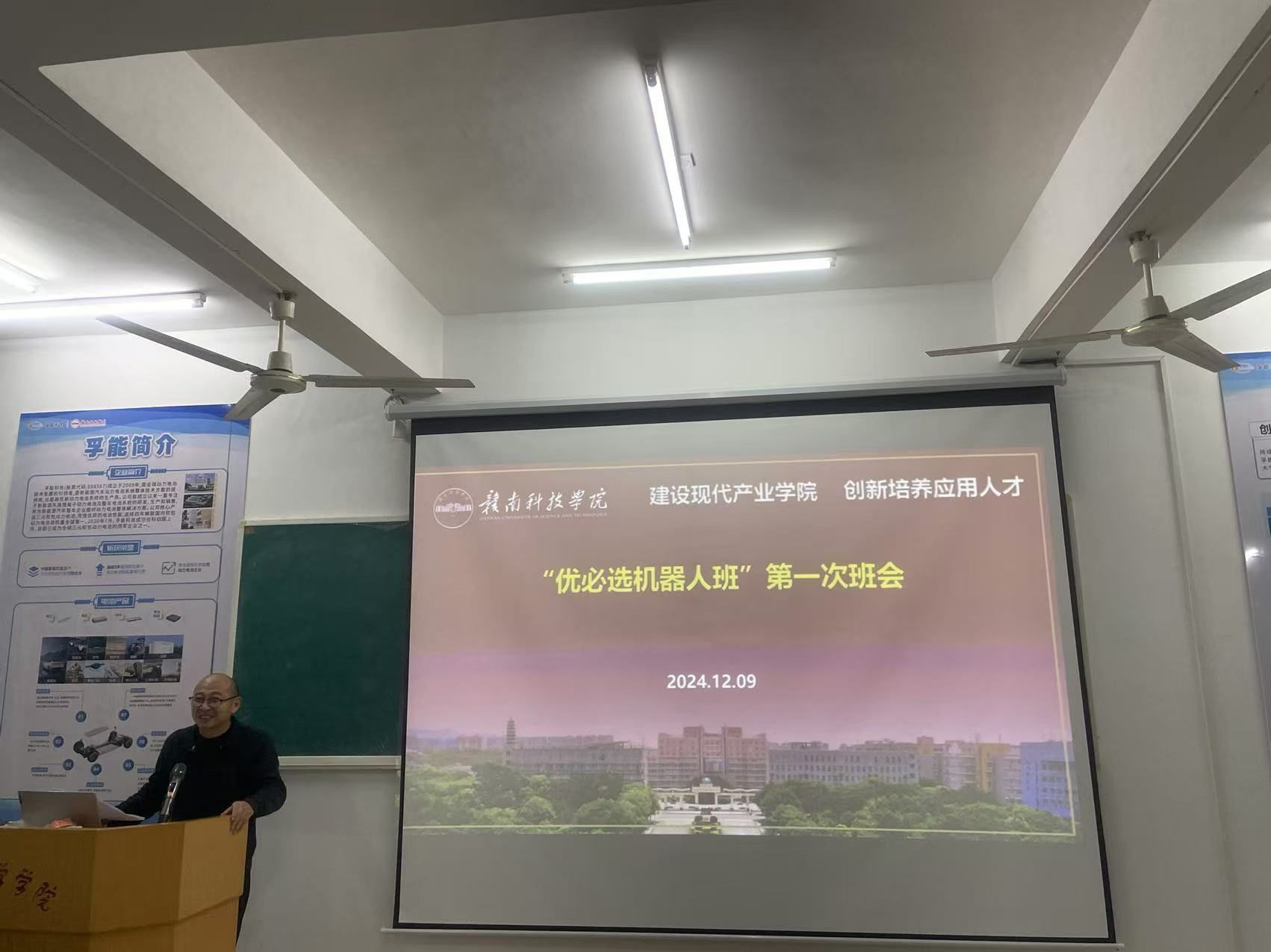 本网讯:12月9日,智能制造现代产业学院2026届“照耀齿轮班”“优必选机器人班”和“格力明珠班”分别召开首次班会。智能制造现代产业学院执行院长刘辉、副院长关开荣、教学管理部主任王腊节、产业服务部主任葛德亮,各班级教研室正副主任、班主任以及全体同学参加了会议。班会由葛德亮主持。