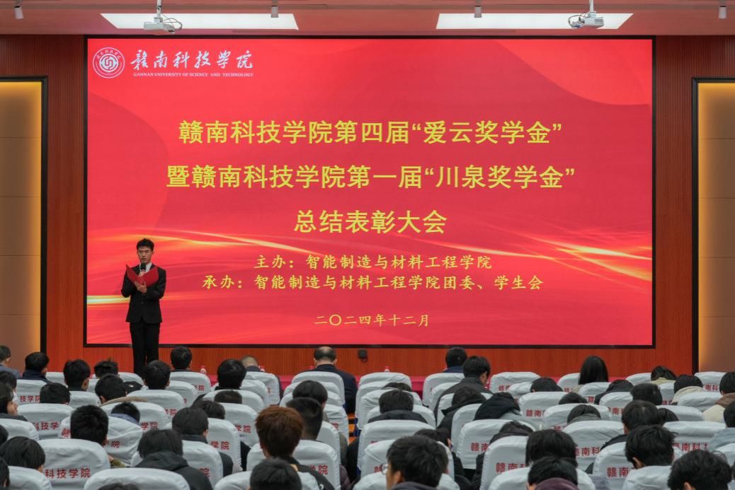 本网讯:12月24日晚,pp电子在图书馆学术报告厅举办第四届“爱云”奖学金暨第一届“川泉”奖学金总结表彰大会。学校党委委员、副校长左群出席活动,pp电子游戏平台网站党委副书记朱根松,党委委员、副院长刘辉,党委委员关开荣、肖志华及学院全体辅导员、学生代表参加此次表彰大会。
