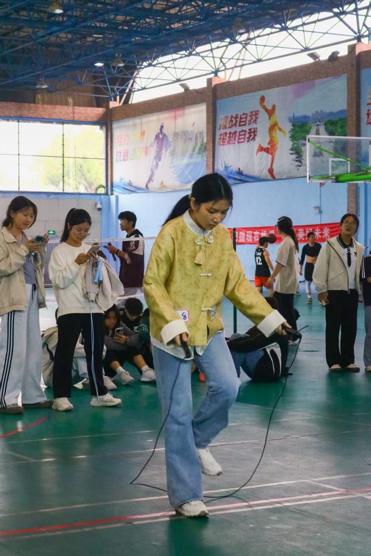 本网讯:为积极响应“健康第一”的教育理念,引导广大学生关注身心健康、养成良好习惯,进一步推进pp电子“活力赣科”健康素养提升工程,4月27日上午由学工处主办,pp电子游戏平台网站承办的“青春跃动,绳彩飞扬”跳绳比赛在风雨操场举办。