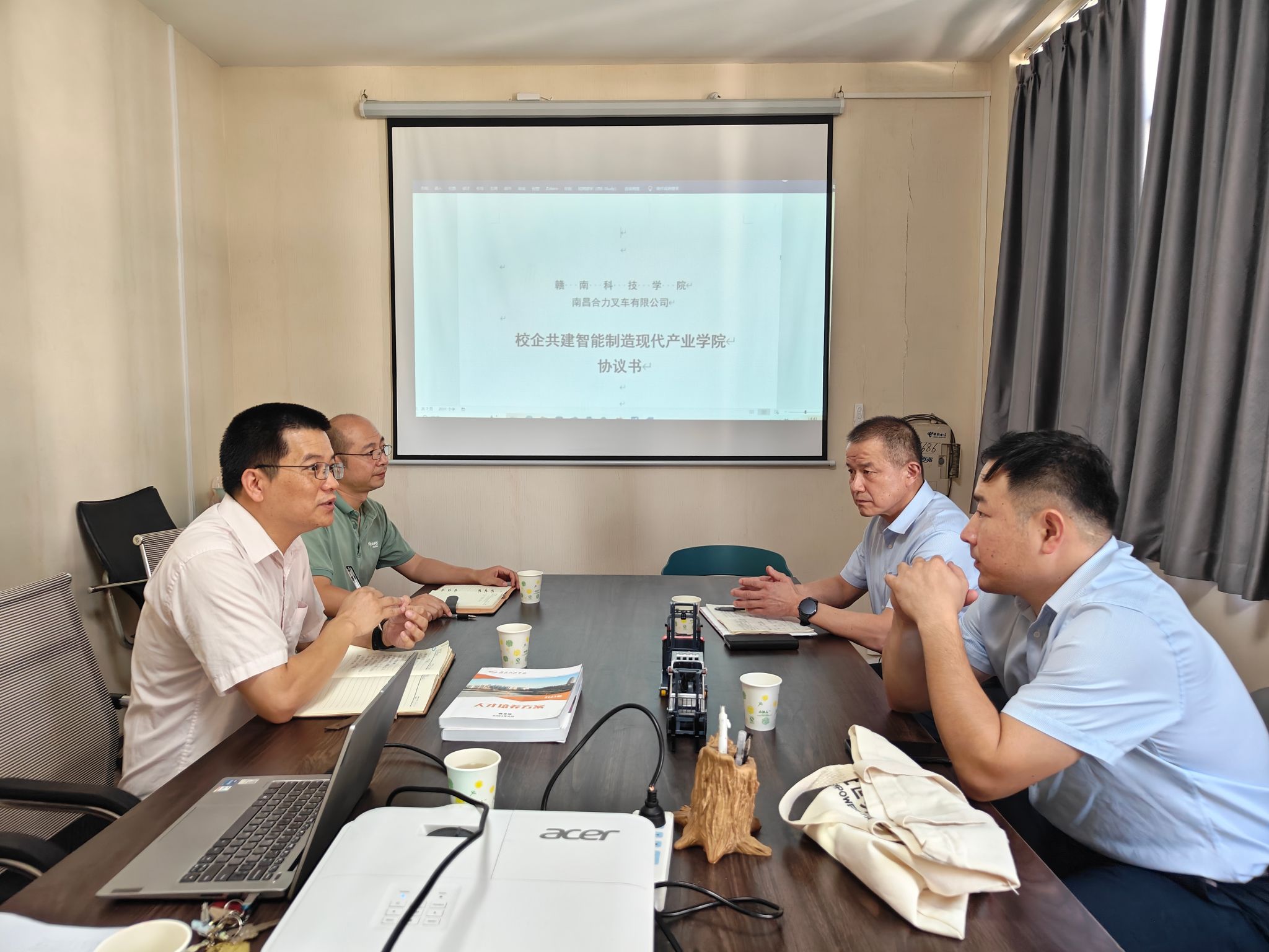 本网讯:8月19日下午,南昌市合力叉车有限公司总经理汪海波、赣州分公司经理陈晨一行到访pp电子游戏平台网站pp电子游戏平台网站,开展校企合作洽谈与实习生招聘活动。学院教学主任关开荣、机器人教研室主任高威、机器人特色班班主任宋碧娴等参与接待并座谈交流。