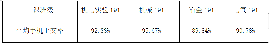 从数据来看,机械191班同学手机上交率较高,表现良好,希望能够