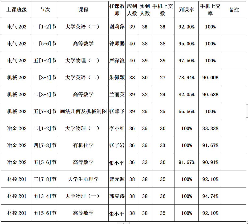 一、第十二周抽查到课率情况通报