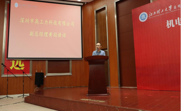 本网讯  61日下午,江西理工大学应用科学学院“高工力杯”第一届“机电之星”暨“高工力奖学金”终评会在我院逸豪学术报告厅隆重举行。深圳市高工力科技有限公司副总经理,我院深圳校友会会长,机电工程系自动化专业2005届校友黄羽、院长何锦龙、副院长薛香恒、机电工程系党总支书记朱根松、系主任刘辉、副主任肖志华、副主任关开荣、机电工程系各教研室教师评委、学生评委以及二百余名学生观众参加了终评会。此次终评会由机电工程系主办,深圳市高工力科技有限公司赞助。