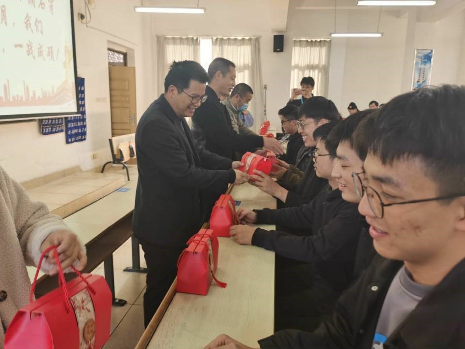 在会议结尾,老师们给考研同学们送来祝福,为每位考研学生赠送脐橙小礼盒,寓意“研”途送橙意,考研指定“橙”,每个礼盒都心意满满。为了给考研同学们送上这份惊喜,老师和学弟学妹们精心筹备,老师们精心挑选脐橙,学弟学妹们准备精美包装,院、系领导及机电系全体教师执笔为每一位考研学子写下衷心祝福。“天道酬勤,水滴石穿,十二月,我们一‘研’为定,一战‘橙’名!”