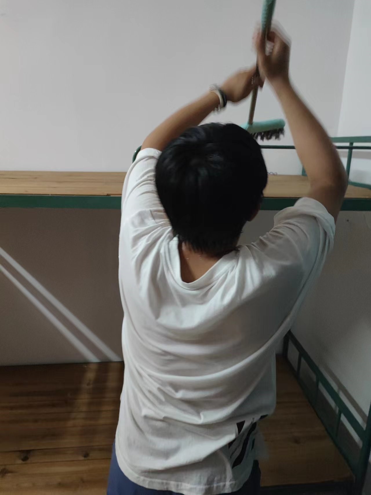 在本次活动中,我系学生志愿者积极配合班助总负责人周璇同学的组织安排,兵分五路对新生所在的宿舍进行认真细致地卫生打扫。宿舍的桌子布满灰尘,志愿者们打湿抹布细致清理;宿舍的床板脏了,志愿者们用扫帚和抹布进行轮番打扫。经过大家的相互配合与共同努力,新生所在的宿舍卫生得到了明显的改善。
