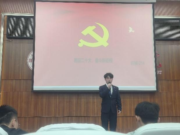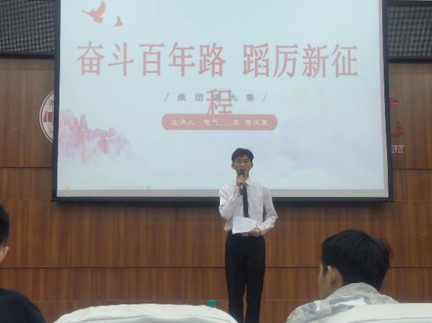 党的二十大临近,本次比赛围绕“喜迎二十大,永远跟党走,奋进新征程”为主题,共派出十六支队伍进行角逐。首先,主持人进行前言介绍,宣布微团课比赛开始,各队伍主讲人依次以ppt形式进行宣讲。比赛过程中,主讲人通过ppt演示以及出色的演讲老师和同学们展示了党百年来走过的光辉历程,彰显出红色精神散发的独特魅力,昭示着青年学生们敢于拼搏、勇于担当的使命决心,引发了在场同学们内心的共鸣,激起了阵阵掌声。