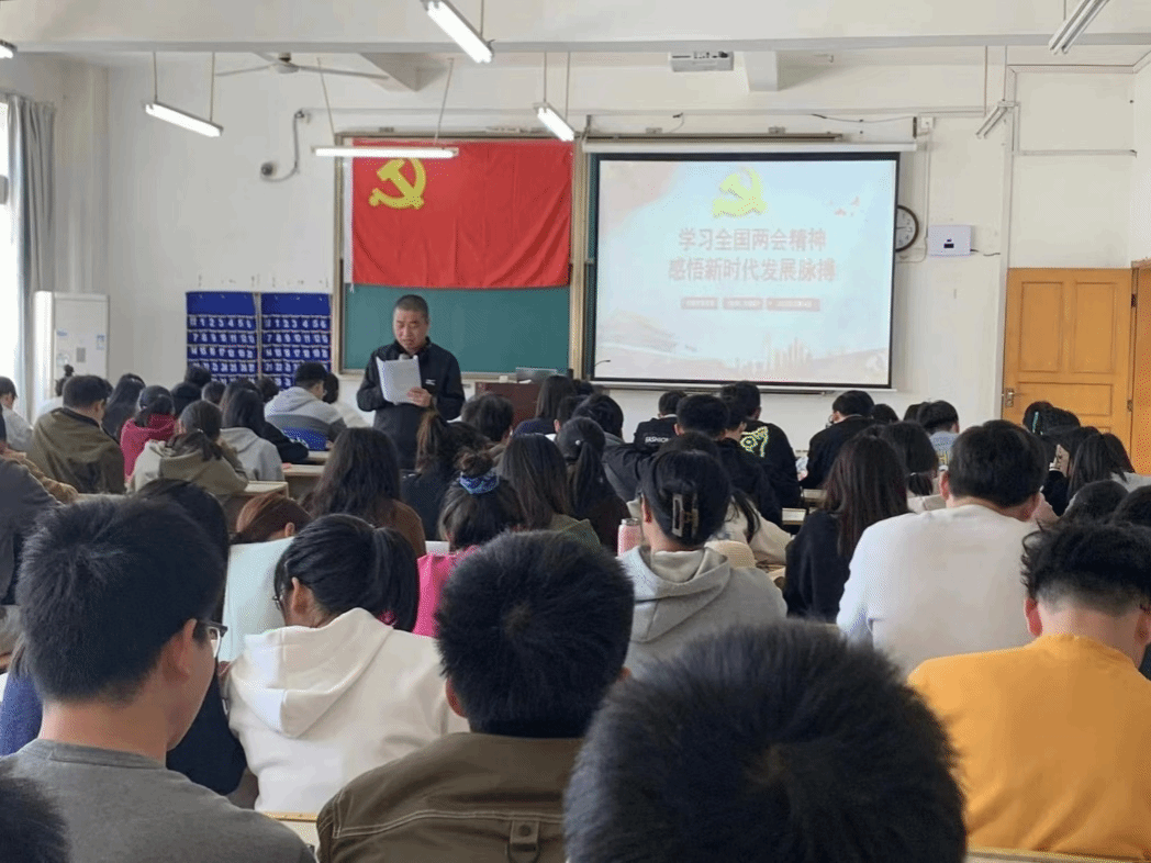 本网讯:3月14日下午,机电工程系在主教z113召开学习全国两会精神专题报告会,会议由机电工程系党建组织员杨瑞主持,本科生支部全体党员参加会议。
