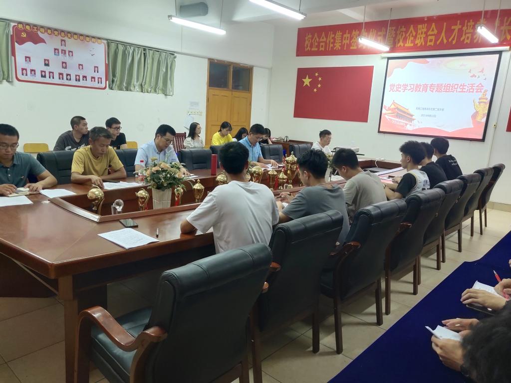 9月10机电工程系本科生第二党支部在崇善楼8楼会议室召开党史学习教育专题组织生活会,副院长付玉华同志到会指导,支部联系领导机电工程系副主任关开荣作点评发言,会议由支部书记孔靖宇同志主持。