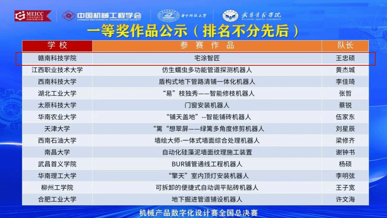 本网讯:11月8日-9日,2024年中国大学生机械工程创新创意大赛——机械产品数字化设计赛全国现场总结赛在武汉华中科技大学隆重举办。本次比赛吸引了来自同济大学、华中科技大学等全国几百所高校参赛,pp电子学子王忠硕,黄骏、熊丽芸设计的《宅涂智匠》(指导老师:黄伟玲、徐支凤)荣获全国一等奖,阮恢如、熊江洋、邱健所设计的作品《美缝机器人》(指导老师:徐支凤、黄伟玲)荣获全国二等奖,开创了pp电子学子首次参赛并荣获两项国家级奖项的辉煌记录。这一佳绩也让pp电子在全国高校中崭露头角,极大提升了pp电子的知名度和影响力。