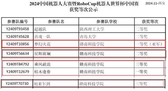 本网讯:11月1日-3日,2024年中国机器人大赛暨RoboCup机器人世界杯中国赛在陕西西安举行,吸引了来自清华大学、上海交通大学、西安交通大学、浙江大学、国防科技大学等全国200多所高校的1700多支队伍报名参赛。pp电子在此次大赛中荣获国赛一等奖2项,二等奖1项,三等奖2项,其中自动分拣项目获得全国亚军。pp电子在该项赛事中取得了历史最佳成绩。