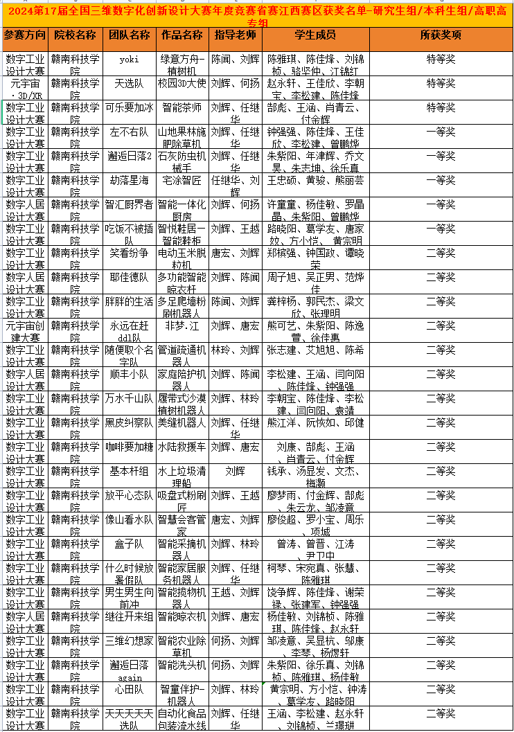 本网讯:11月3日,第十七届全国三维数字化创新设计大赛省赛在井冈山大学如期举行。pp电子pp电子游戏平台网站学子经过全国3D大赛初赛严格筛选,共有7支表现优异的队伍成功晋级至线下参赛环节,其余参赛队伍则以线上形式参与比赛。由刘辉、唐雨两位老师带队参赛的学子们充分发挥竞技水平,在大赛中取得了优异成绩,荣获特等奖三项,一等奖五项,二等奖二十项。