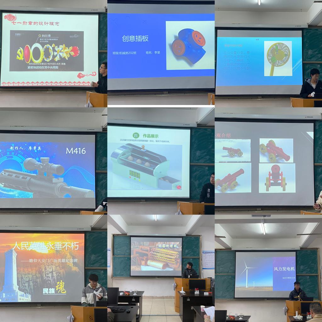 为庆祝中国共产党成立100周年,本届大赛以“红色精神、自主创新”为主题,吸引了来自全校机械工程、机械电子、汽车服务、材控、冶金等专业50多名同学参赛。比赛通过现场问辩和答辩展示两个环节,最终评选出一等奖14个,二等奖19个,三等奖15个。作品《高举党的100周年旗帜》、《智能仿生蜘蛛机器人》等作品获得3D打印比赛一等奖;作品《红船》、《多功能搅拌杯》等获得二等奖;作品《红军帽》、《多功能手机支架》等获得三等奖。