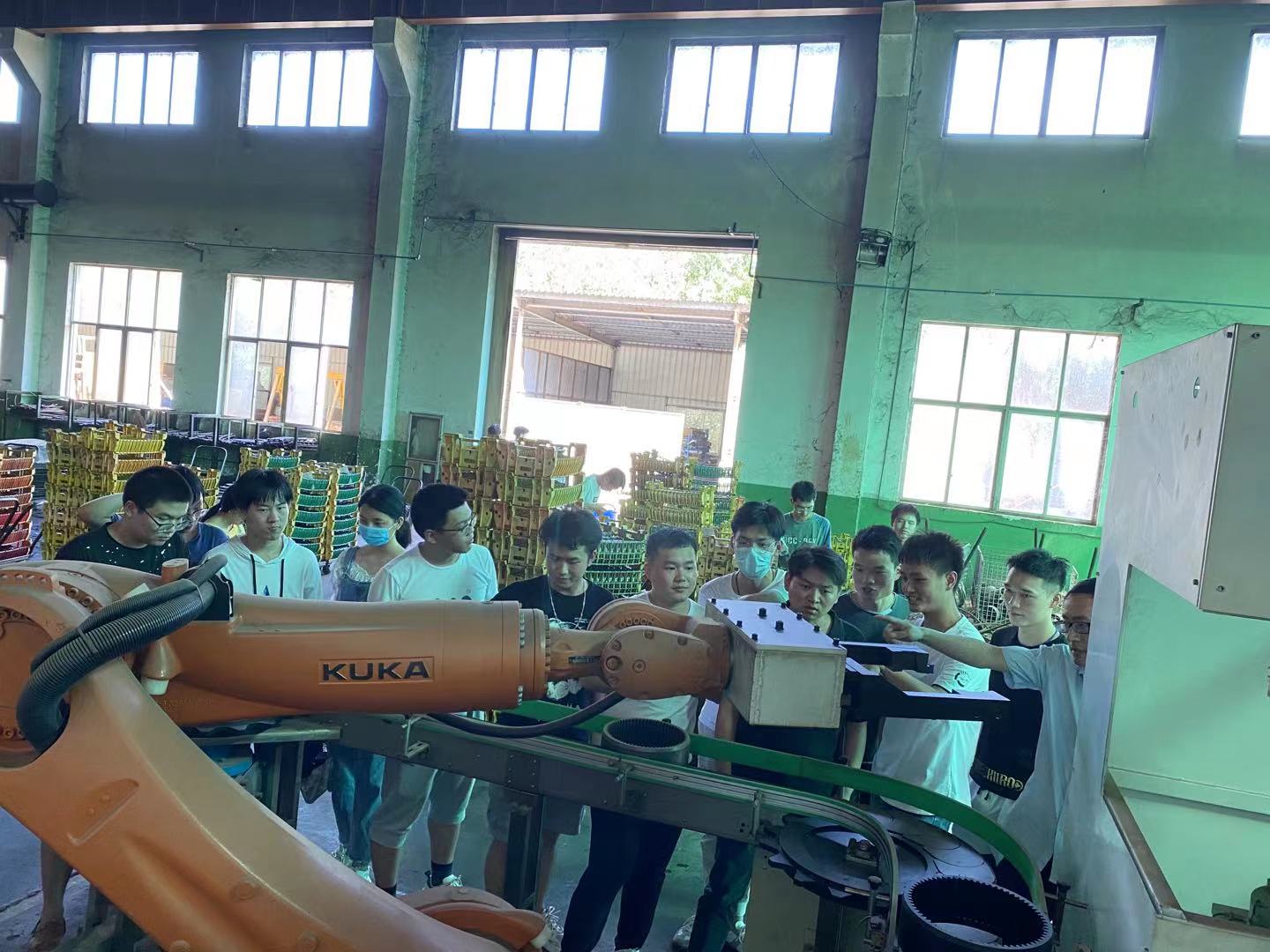 通过这次现场生产实践学习,同学们结合学校所学,特别是近期的机器人课程设计、机器人设计实训、机器人拆装实践等环节的学习,充分理解了机器人在生产实际中降低生产成本、提高生产效率与产品质量的应用,大大促进同学们后续的课程学习以及对未来的职业发展有了更清析的认识。