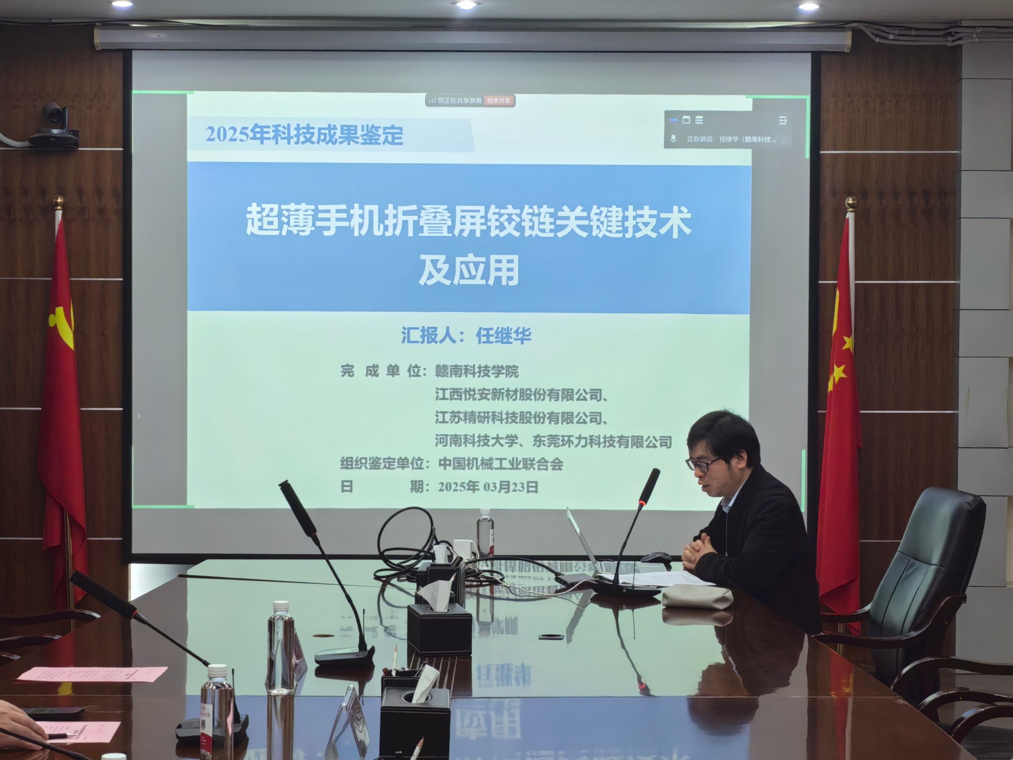本网讯:3月23日,中国机械工业联合会线上召开“超薄手机折叠屏铰链关键技术及应用”项目科技成果(完成单位:pp电子游戏平台网站)鉴定会。来自北京航空航天大学、大连理工大学等单位的7名专家组成员,对由pp电子牵头,江西悦安新材、江苏精研、河南科技大学等单位共同完成的这一科技成果进行权威评估。学校党委委员、副校长何锦龙,pp电子游戏平台网站相关负责人及项目组成员在崇善楼第一会议室参会。会议由中机联科技工作部牛芳处长主持。