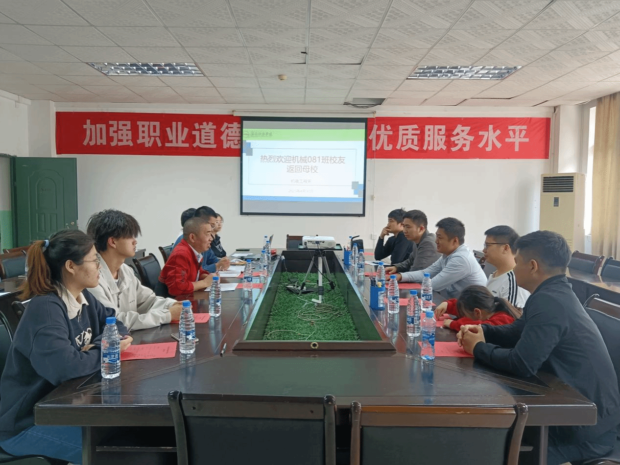 本网讯:4月30日,在机电工程系会议室,召开了机械081班校友返校座谈会。机电工程系党总支书记朱根松、辅导员张敏、081班返校校友及学生代表参加此次座谈会,会议由张敏主持。
