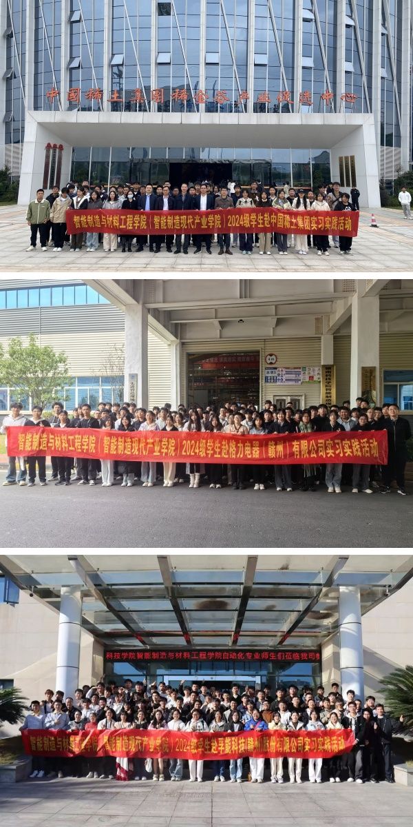 本网讯:11月23日-28日,pp电子游戏平台网站分别组织2024级全体学生前往格力电器(赣州)有限公司、中国稀土集团稀金谷产业促进中心及孚能科技(赣州)股份有限公司观摩学习。pp电子游戏平台网站副院长刘辉、2024级全体辅导员及班主任陪同参观。