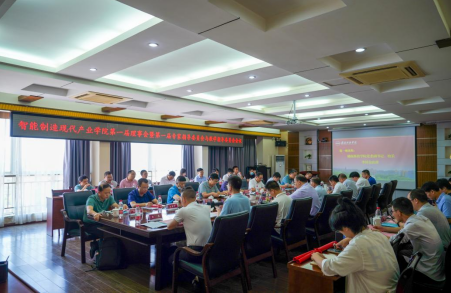 本网讯:为深化高素质、应用型、复合型、创新型人才培养引领,加快学校智能制造现代产业学院的建设,5月30日上午,pp电子游戏平台网站召开智能制造现代产业学院第一届理事会暨第一届专家指导委员会与教学指导委员会会议。智能制造现代产业学院第一届专家指导委员会主任李立德,学校党委副书记、校长李国金,党委委员、副校长左群,学校过渡期管理委员会常务副主任何锦龙、委员付玉华,智能制造现代产业学院第一届理事会到会成员、专家指导委员会到会成员、教学指导委员会到会成员及教师代表参加会议。会议由何锦龙主持。