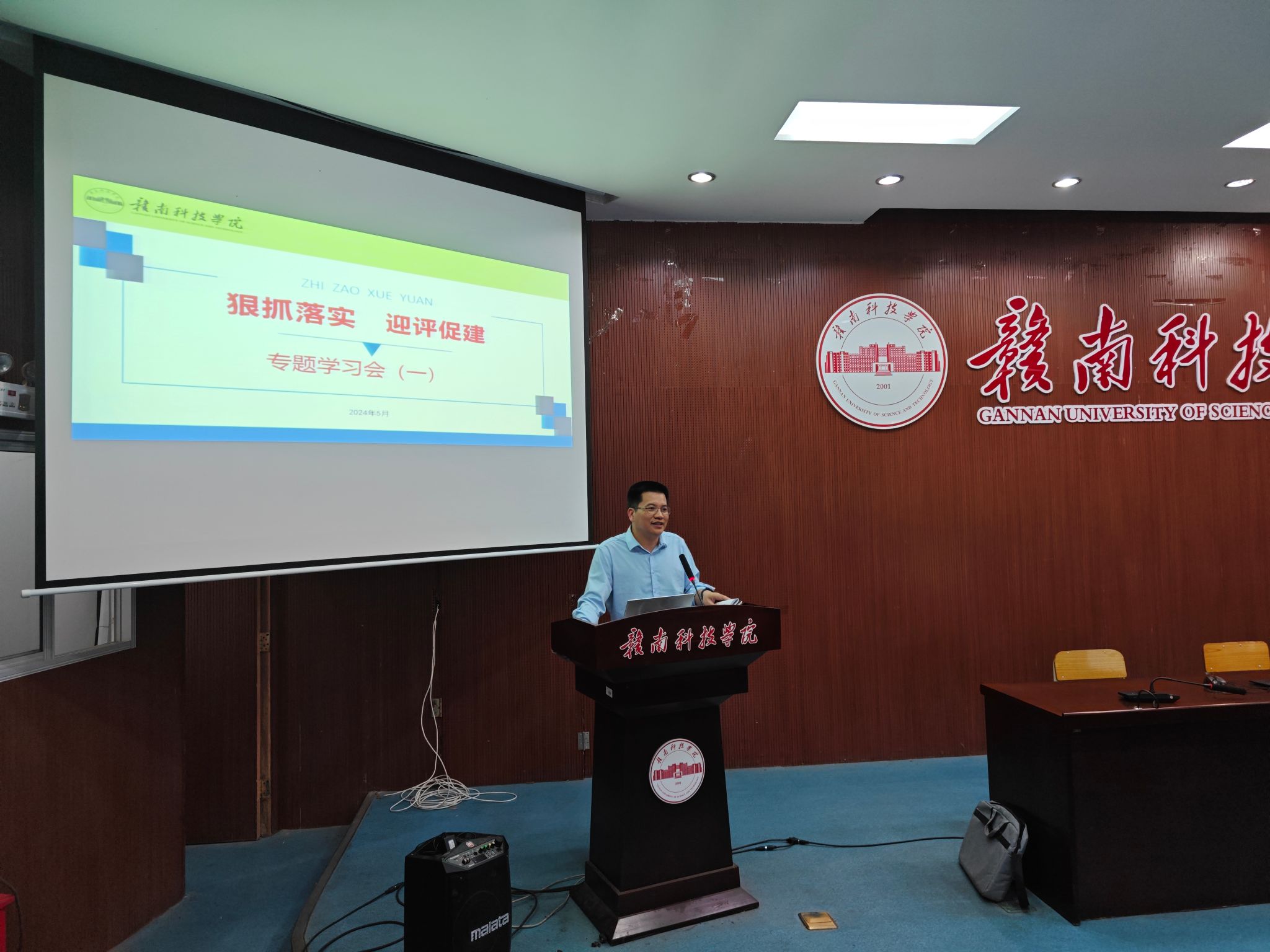 本网讯:为了更高效推动本科教学工作合格评估工作开展,更深入理解本科教学工作合格评估的内涵。5月7日,我院在MBA报告厅召开全院教职工评建知识专题学习会,号召和动员全院教职工以“迎评促建,狠抓落实,人人学习,争先竞优”的精神面貌,全力以赴地投入到评估工作当中。