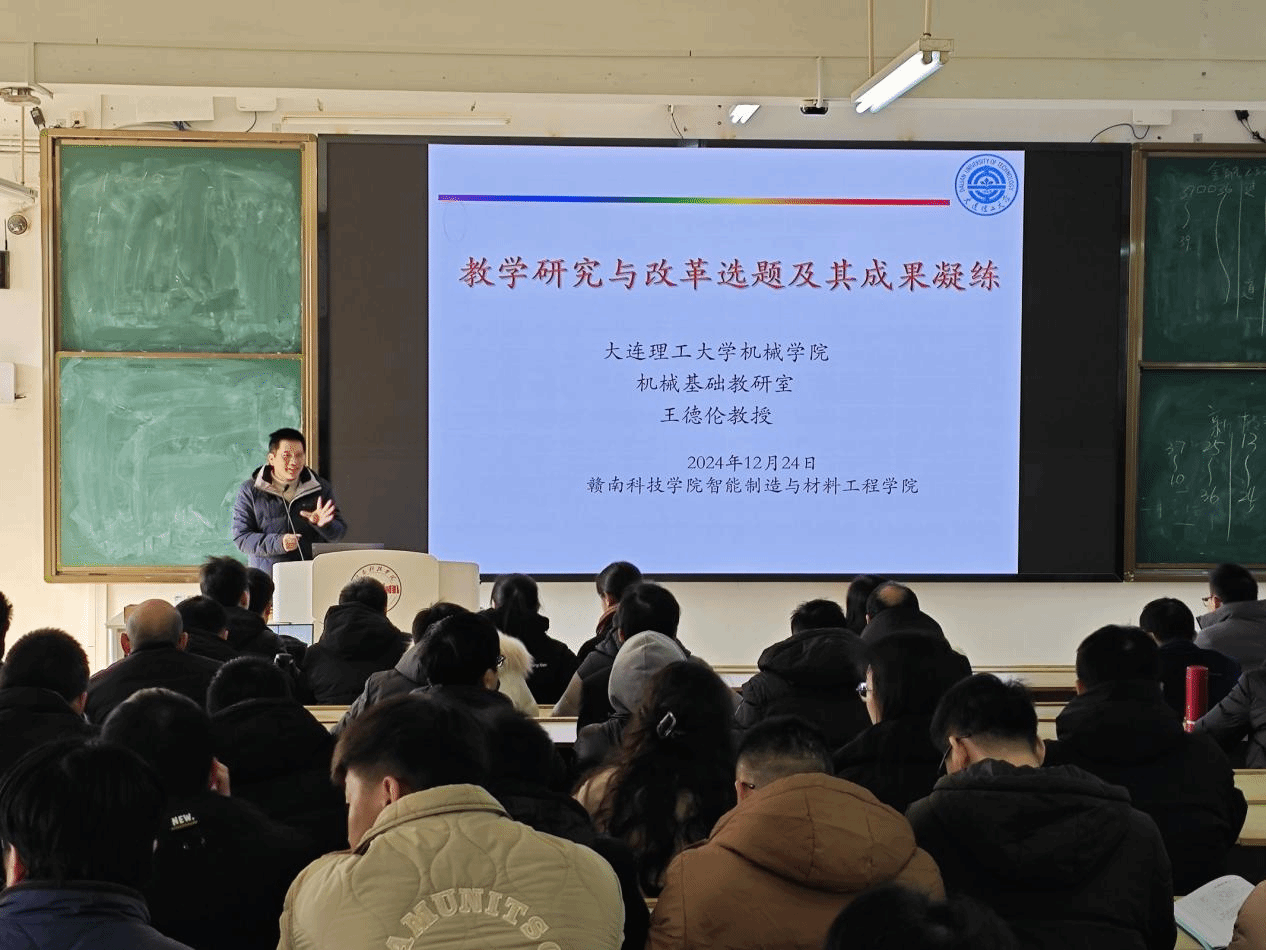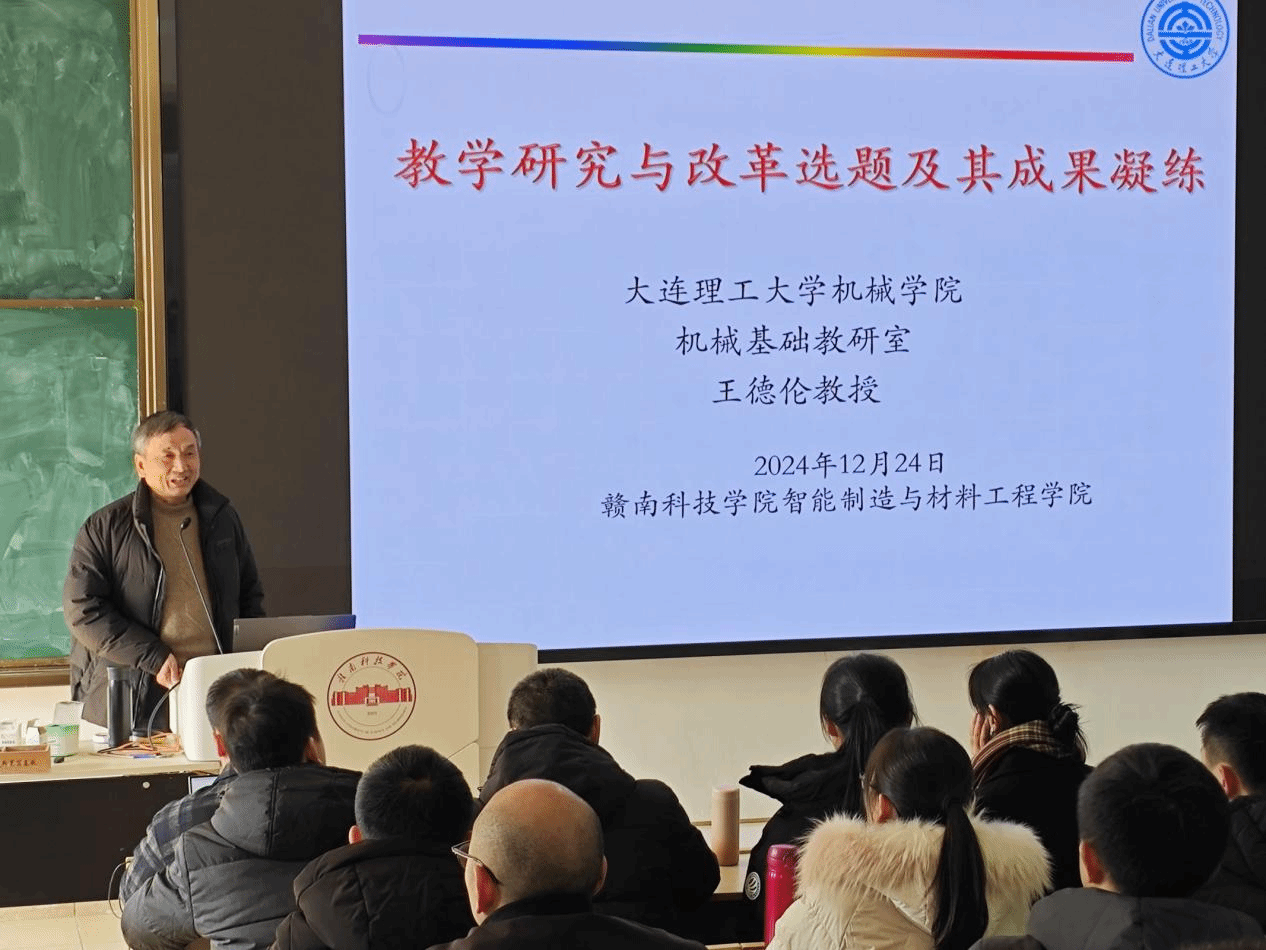 本网讯:12月24日,pp电子游戏平台网站在主教楼Z1D2举办了教学研究与改革选题及其成果凝练讲座。本次讲座特别邀请大连理工大学机械学院王德伦教授担任主讲嘉宾,围绕教学工作与教学成果凝练,分享教学成果培育与申报经验。pp电子游戏平台网站全体教师参加了此次讲座,会议由学院党委委员关开荣主持。