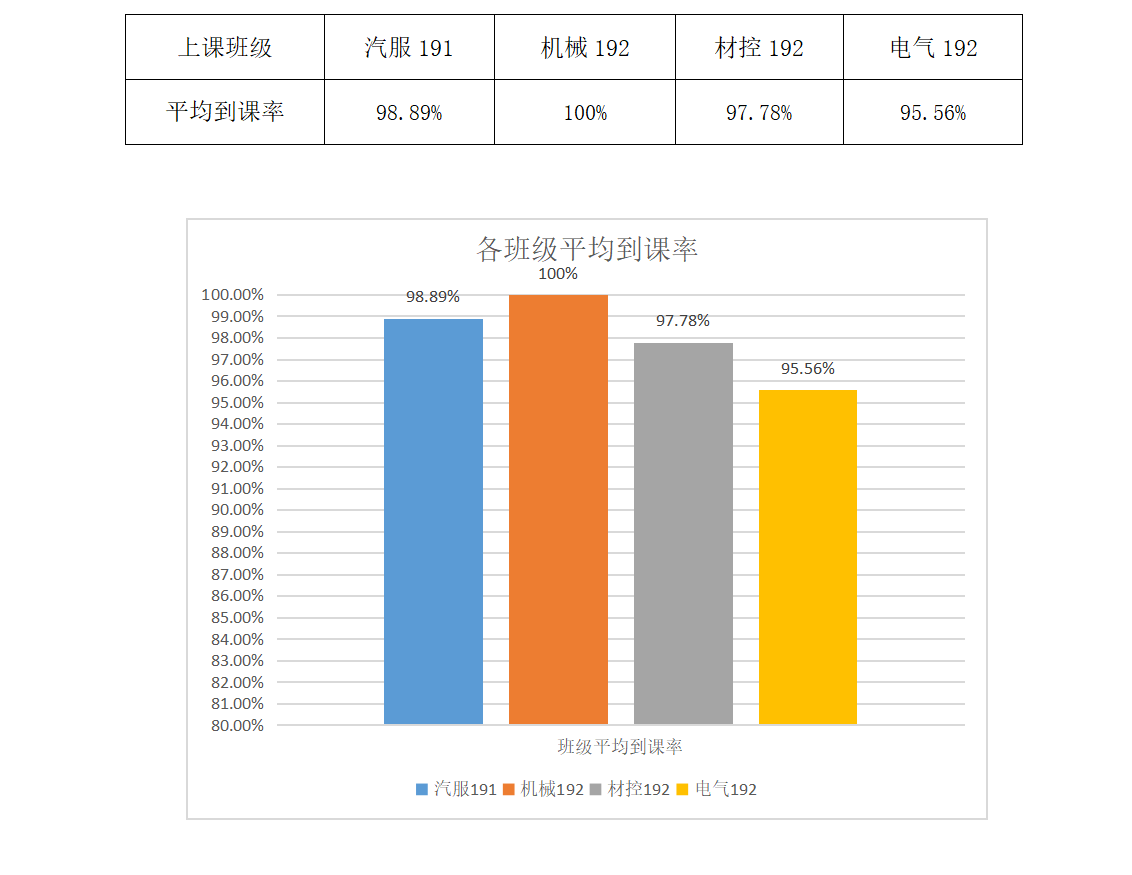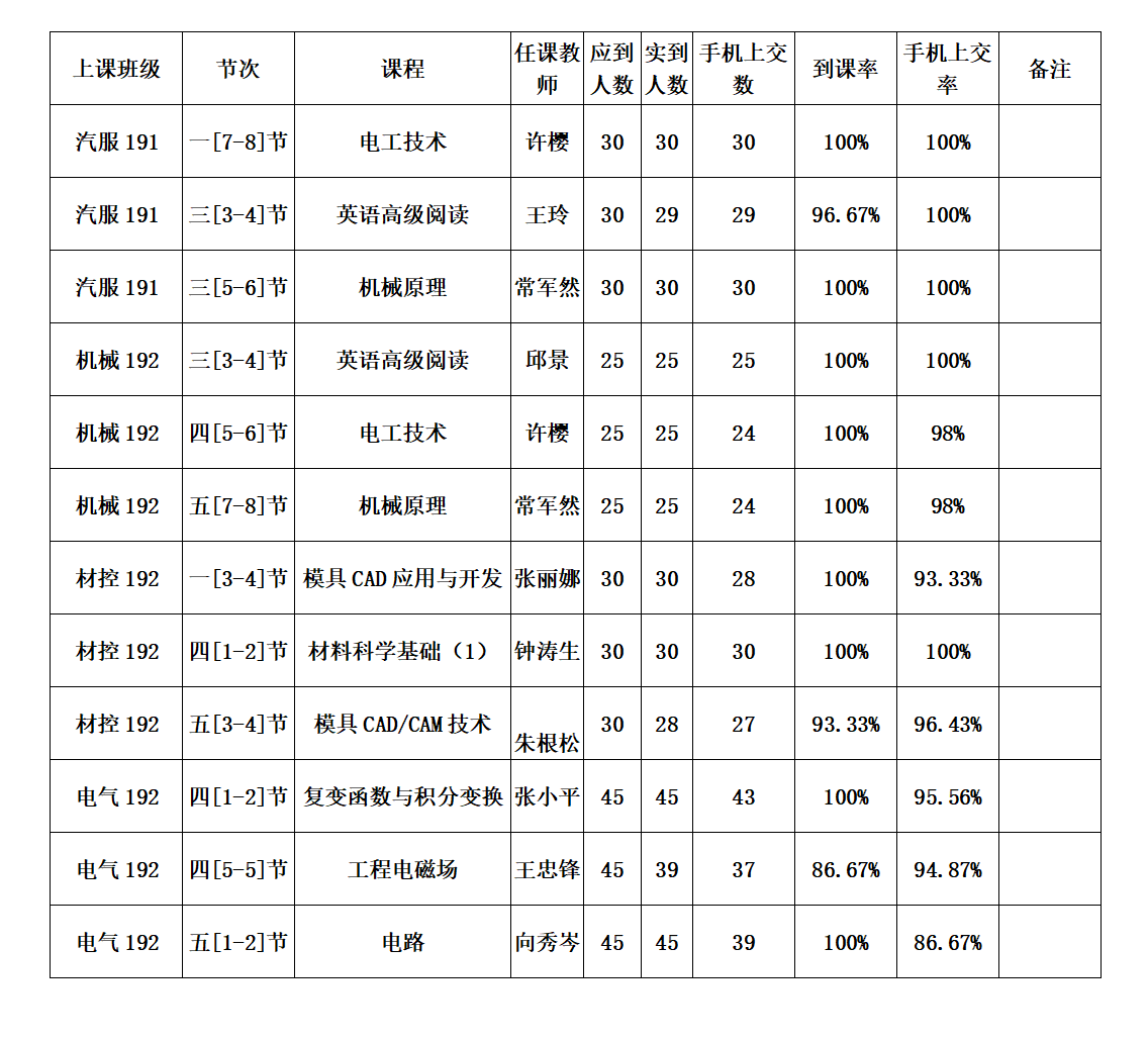 从上交数据情况来看机械192班同学到课率较高,表现良好,希望能够继续保持