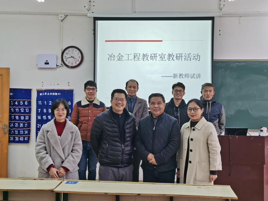 2022111日下午,冶金工程教研室在主楼104教室进行了新入职教师下学期课程试讲及授课经验交流教研活动。机电工程系关开荣副主任,肖志华副主任及全体冶金工程教研室老师参加该活动。