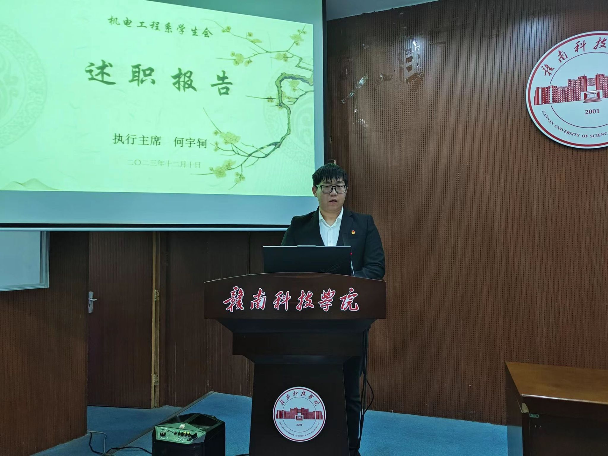 会议开始,机电工程系学生会执行主席何宇轲同学、团总支第一学生副书记陈章健同学和团总支第二学生副书记饶宇鸿同学上台发言,对我系团总支、学生会本学期工作中取得的成绩、存在的不足做出详细汇报总结以及对下一年的工作做出展望。