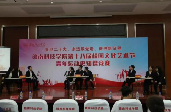 本网讯:为喜迎中国共产主义青年团成立100周年,进一步活跃校园文化气氛。丰富大学生课余生活,给同学们一个展示自己的舞台,进一步营造良好的学习氛围。陶冶同学们高尚的道德情操,启发大学生的创作灵感。锻炼同学们的知识储备,促进同学们之间的交流。5月7日,机电工程系于图书馆报告厅承办“喜迎二十大、永远跟党走,奋斗新征程” 第十八届校园文化艺术节青年运动史知识竞赛。莅临此次活动的嘉宾有校团委书记李敏、机电工程系副主任肖志华、机电工程系团总支书记张敏、人文科学系团总支书记郭豪、经济管理系王博文、建设工程系董宇鹏。