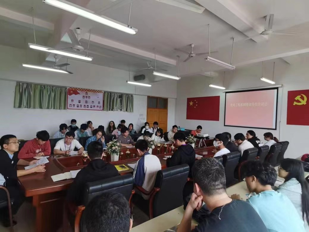 本网讯:2022年6月20日,为了提高网络舆论引导能力和水平,树立正确的意识形态,加强宣传队伍建设,增强宣传工作力度,提升宣传工作水平,培养更多的宣传人才,机电工程系团总支书记张敏老师主持召开机电工程系网络宣传员培训会,机电工程系全体学生干部参加本次培训会。